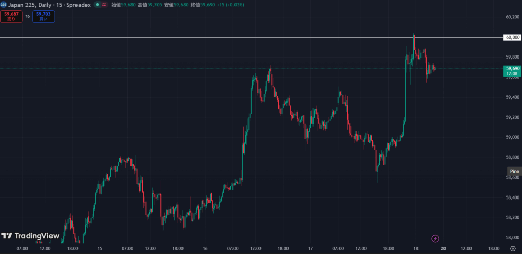 しまいには、日経平均史上最高値である6万円をタッチしました。