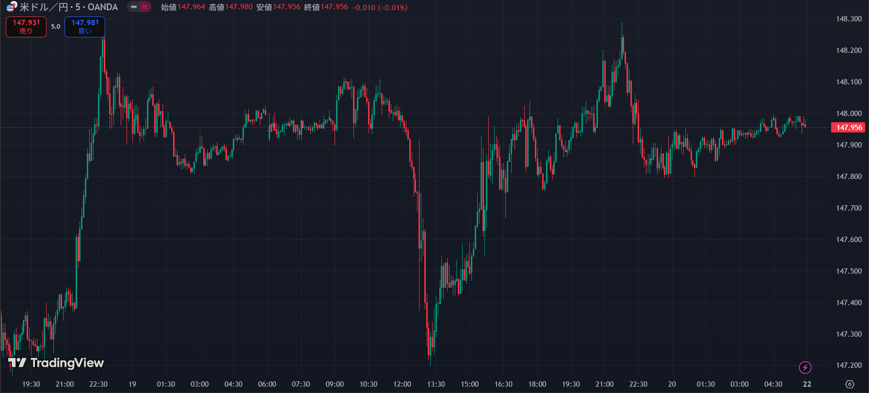 ドル円 5分足